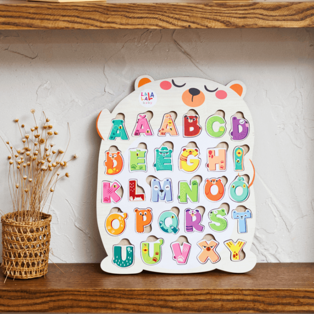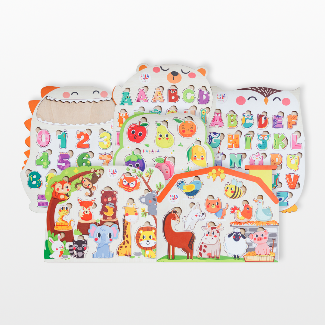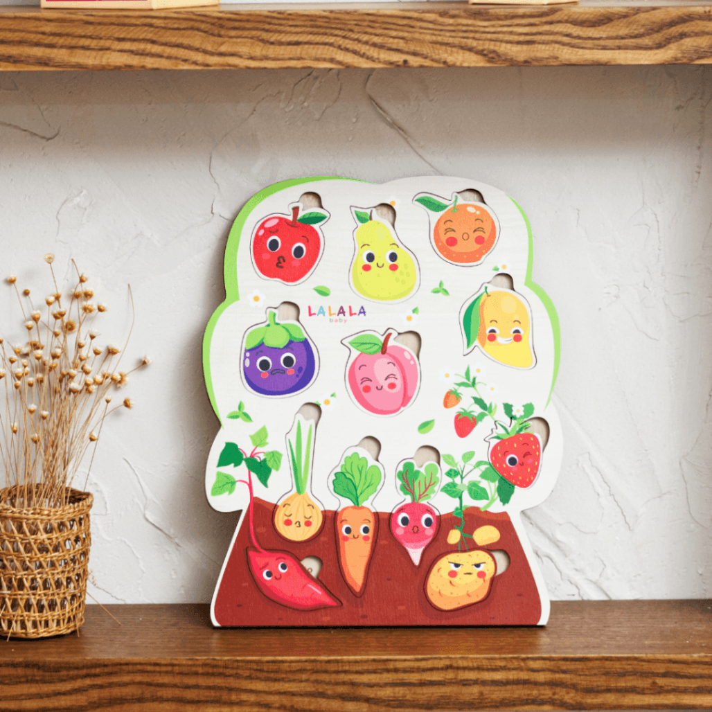 Bảng núm gỗ cho bé Song Ngữ Lalapuzzle lắp ghép gỗ chữ cái động vật hoa quả rau củ nhiều chủ đề Lalala baby