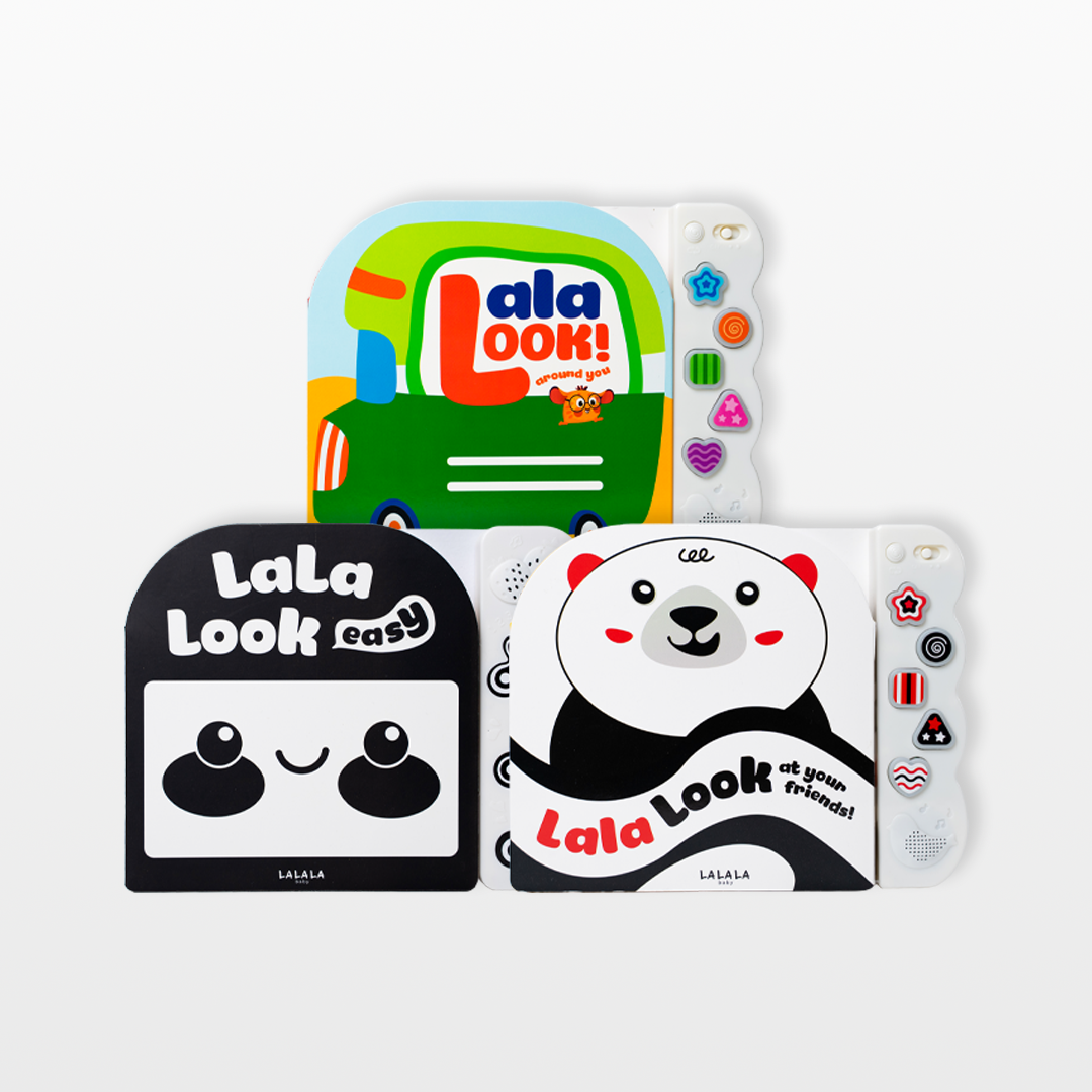 Đồ chơi âm thanh LalaLook với thiết kế sách ảnh zigzac, mang đến những bức tranh đa dạng hình dáng và màu sắc phù hợp với sự phát triển thị giác của trẻ. ảnh tích hợp âm thanh tiếng ồn trắng, nhạc thiếu nhi hỗ trợ phát triển thính giác và tăng khả năng tập trung của bé. Look At Your Friend! gặp gỡ những người bạn ngộ nghĩnh với gam màu cơ bản dành cho bé 0-6 tháng tuổi. Look Around You! nhìn xung quanh để bắt gặp các loại phương tiện giao thông và tập đếm với màu sắc rực rỡ, bắt mắt cho bé từ 6 tháng trở lên.